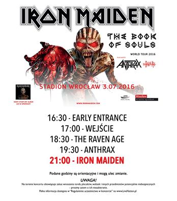 Rozkład godzinowy koncertu Iron Maiden!