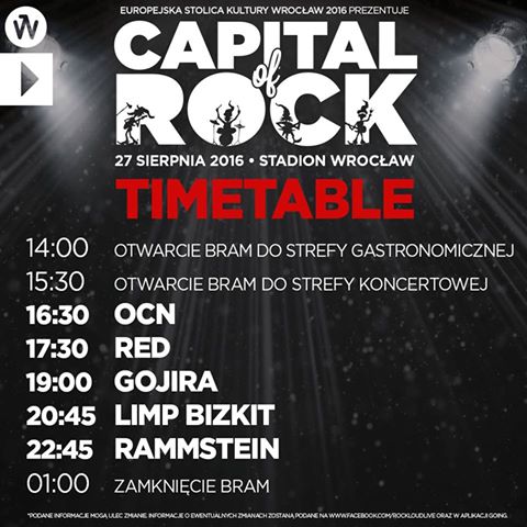 Rozpiska godzinowa festiwalu Capital of Rock: