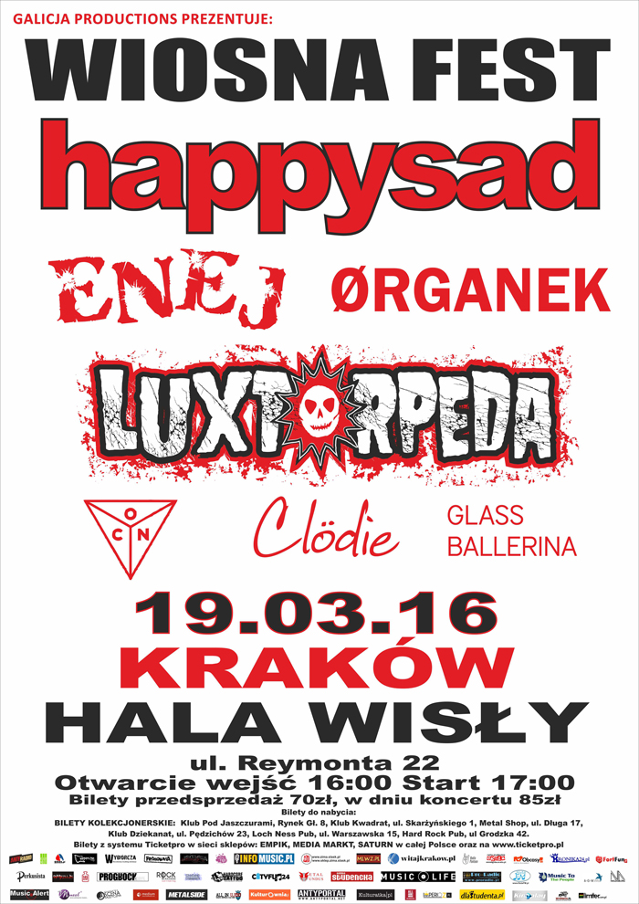 WIOSNA FEST Happysad, Enej, Luxtorpeda, Organek, OCN, Glass Ballerina, Clodie.