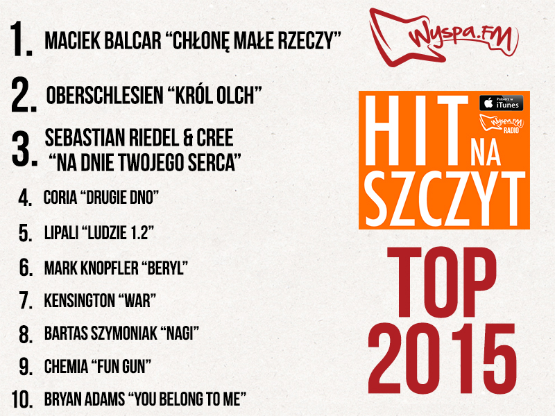 Zapraszamy do wysłuchania podcastu HIT NA SZCZYT TOP 2015 - TUTAJ ->>>
